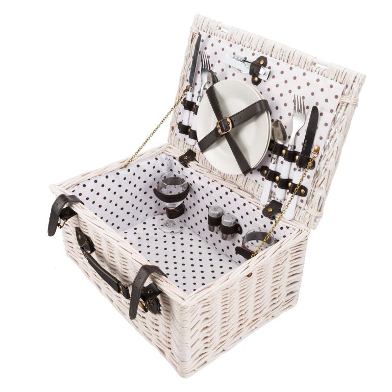 Užijte si krásné počasí a zároveň si vychutnejte lahodné jídlo a pití. S našimi vysoce kvalitními a plně vybaveným piknikovým košem si vše nyní můžete užívat, cítit vůni sena a květin nebo sledoval protékající řeku. Ve vybavení jsou již zahrnuty všechno důležité vybavení pro 2 osoby. Stačí přibalit nějaký dobrý chléb, zeleninu, sýr, klobásu a nějaké ovoce a můžete vyrazit. Není překvapivé, že společně strávený čas pod širým nebem bylo oblíbené a vyhledávané již ve starověku. Koš je nejen elegantní a nadčasový, ale díky materiálu je také šetrný k životnímu prostředí a velmi odolný. Technické údaje: rozměry: cca 41 x 21 x 28 cm hmotnost: 2,2 kg řemínky: kožené vybavení: pro 2 osby materiál: proutěný ručně pletený kufr klasická elegance příbory: nerezová ocel talíř: porcelán Obsah balení: 1 x koš 2 x porcelánový talíř 2 x sklenice 2 x sada příborů (nůž, vidlička, lžíce) 1 x someliérská vývrtka 1 x slámka na sůl a pepř